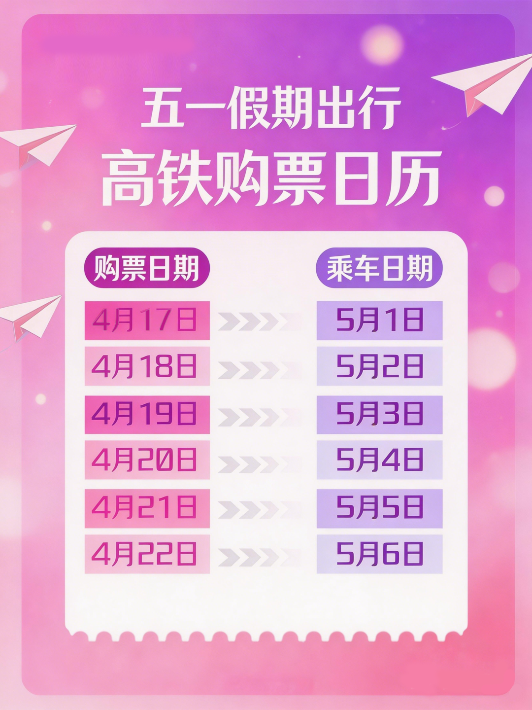 4月17日可购买5月1日的车票