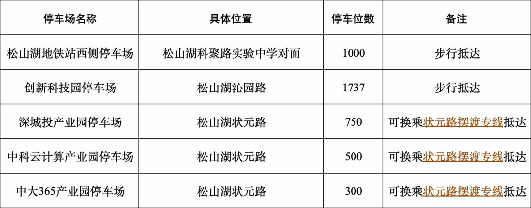 音乐节接驳摆渡车上落客点(红棉路沁园路路口)、 悠兰里、大湾区学校、东莞职业技术学院运行时间