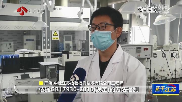 中检江苏检验检测技术有限公司工程师严伟:“依据GB17930-2016规定的方法检测,该产品含氧化合物和甲醇的含量超标。”