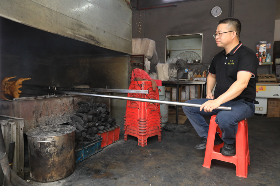 走进黄记,第一眼就能看到老板老黄亲自守在烤炉前,这可不是一般的烤炉——里面的燃料,是东莞本地特有的荔枝柴。
